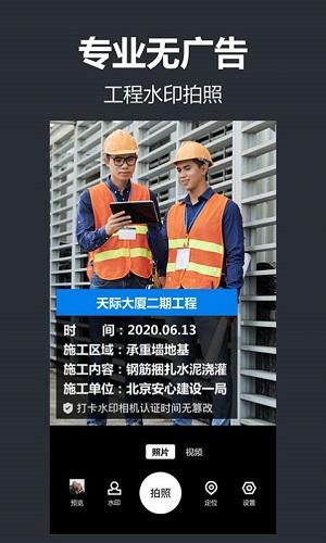 在现实生活当中,相信不少人对于拍照都是比较喜欢的,其实拍照的不仅仅是可以记录生活,有时候拍照也是可以提高工作的效率,今天就给大家介绍一款和工作相关的拍照软件,工程管理相机,工程管理相机专为工程行业用户设计,拍摄后可为照片灵活添加各类水印,满足工程记录多样需求, 工程的工作一般都是需要拍照记录的,有了工程管理相机之后更加方便了,感兴趣的朋友可以下载工程管理相机。