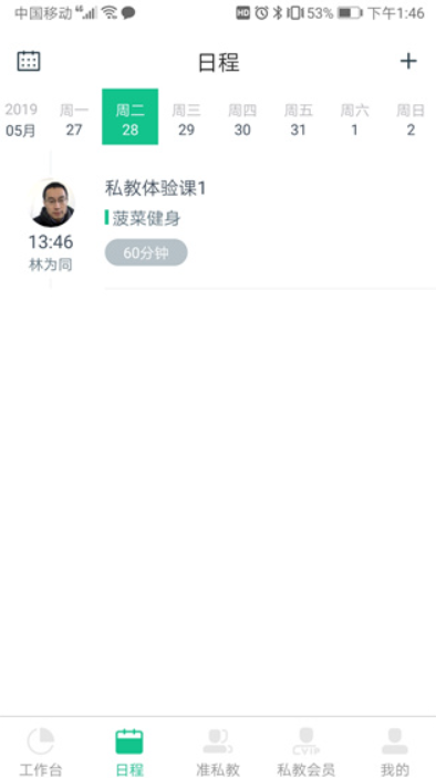 2、进入软件主页面就可以看到今天预约的课程,以及我们本月的业绩
